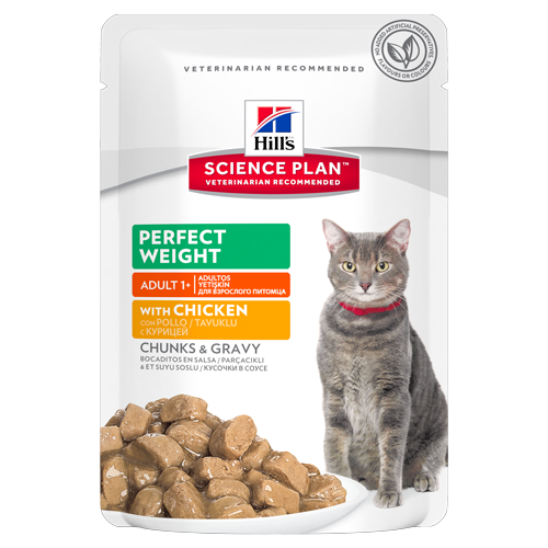 <span class='nowrap'>Science Plan™</span> Perfect Weight has a unique blend of ingredients and low fat content. Formulated to help your cat achieve healthy weight for longer life expectancy.