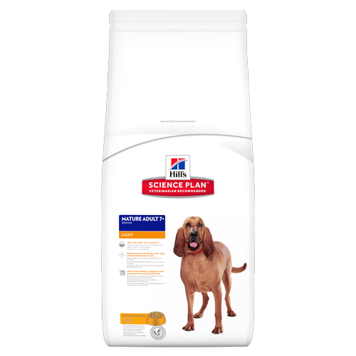 Hill's™ <span class='nowrap'>Science Plan™</span> Canine Mature Adult 7 Light with Chicken is formulated to help maintain ideal weight and sustain mobility. With clinically proven antioxidants and L-carnitine to help turn fat into energy.